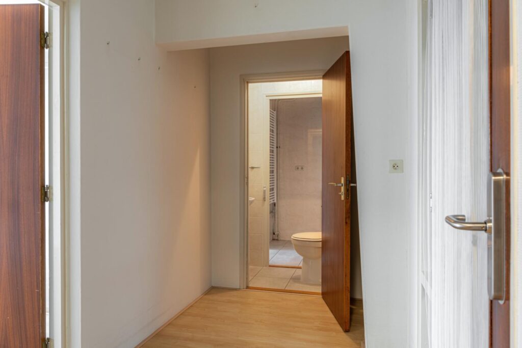 De douche is direct bereikbaar vanuit de slaapkamer of vanuit de hal. De badkamer is netjes betegeld en ziet er verzorgt uit, net als het toilet. Je kunt het toilet ook vanuit de hal binnen komen.