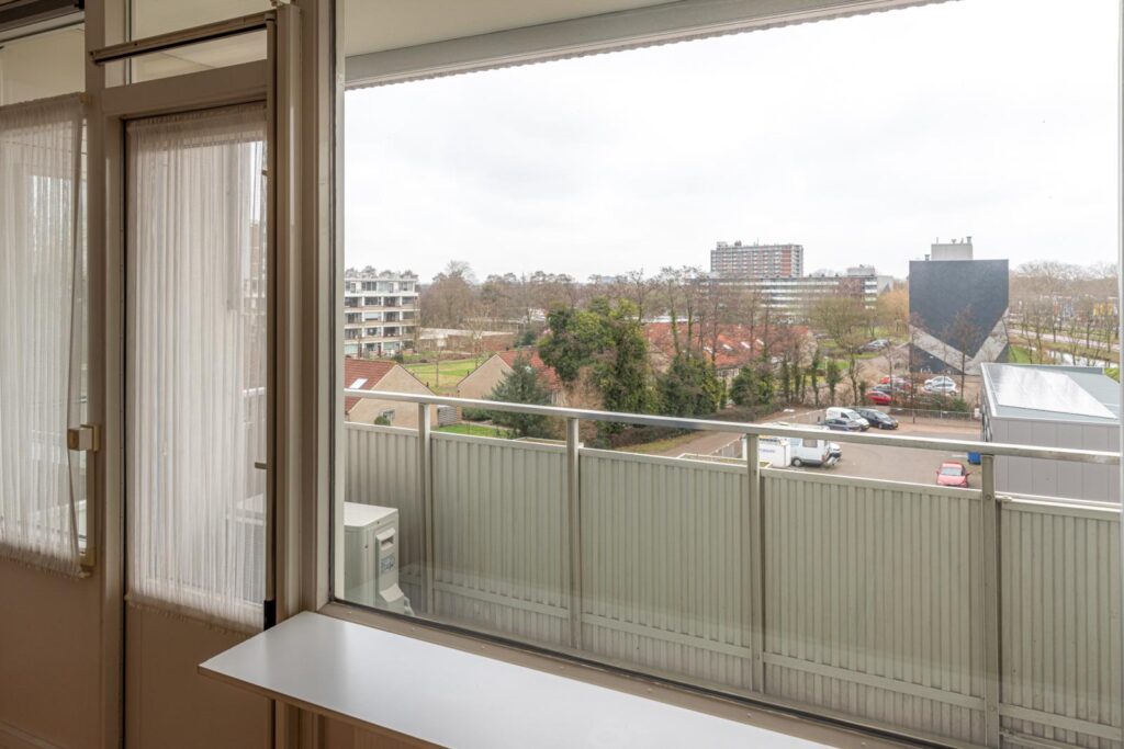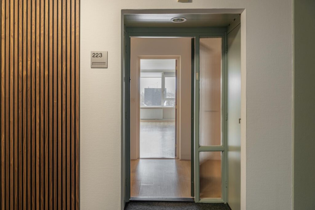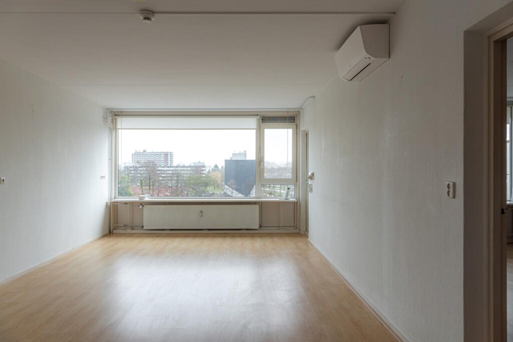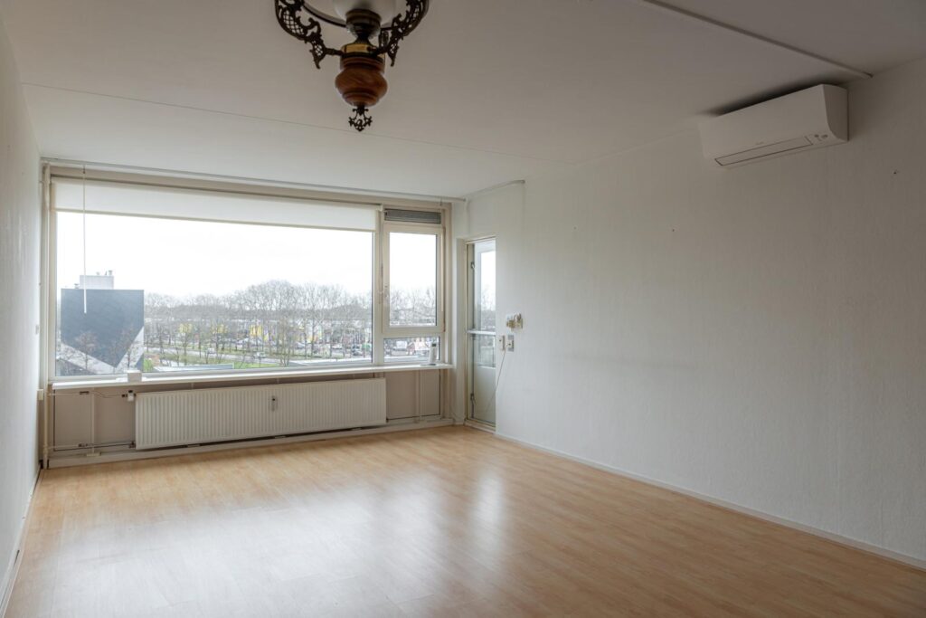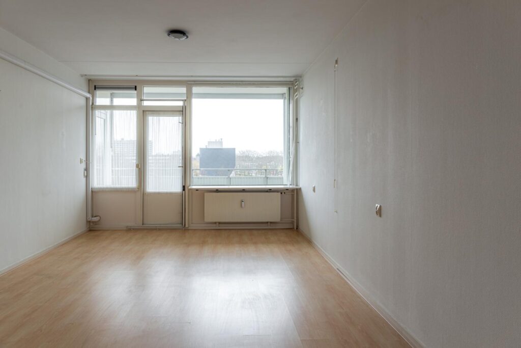 Met de lift maar de 4de verdieping. Entree appartement met links de keuken die je zelf nog mag voorzien van apparatuur maar gelang je nodig bent. Rechtdoor kom je in de ruime woonkamer, rechts van de woonkamer de slaapkamer met balkon.