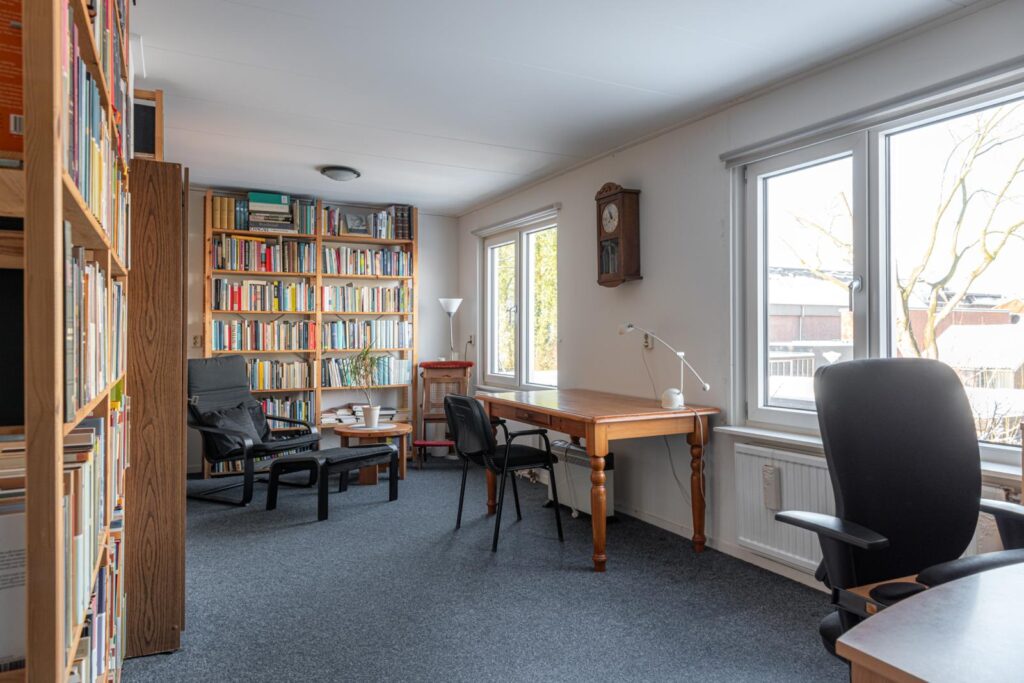 Tegen de eetkamer als verlengstuk, dus een ruime serre die het bij wat koelere dagen heerlijk "het buiten zitten" gevoel geeft. In de gezellige knusse lees-speel-hobby hoek naast de eetkamer is een deur naar de garage met zolderberging.
