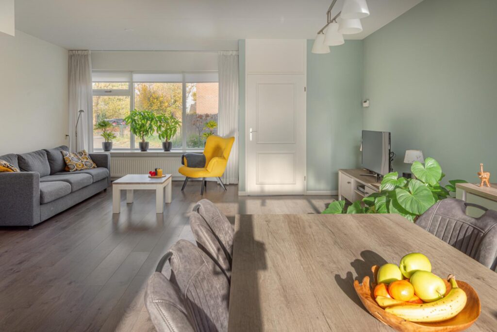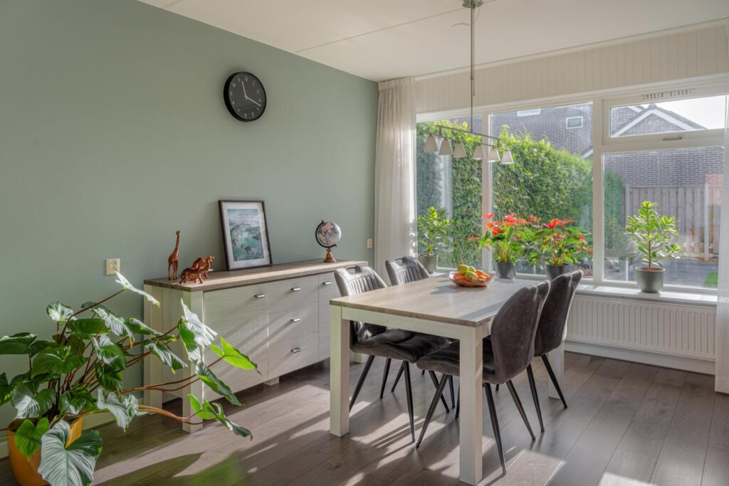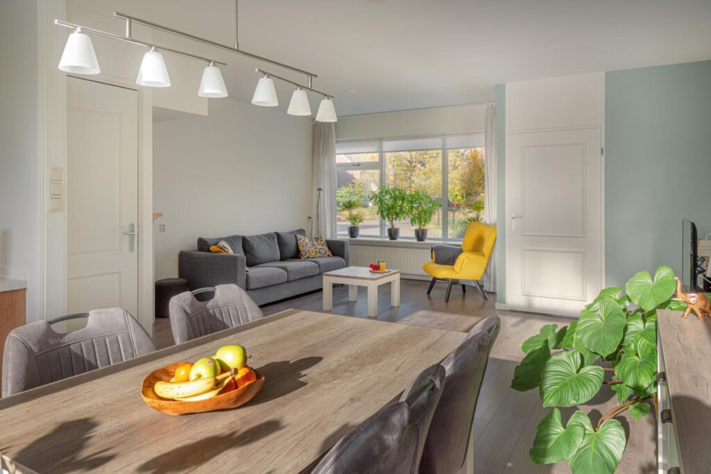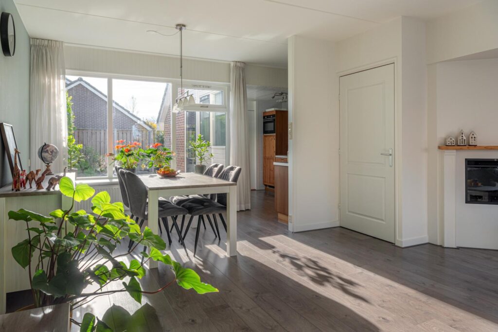 De eetkamer sluit gelijk aan op je keuken maar heeft toch wel weer een aparte hoek ten opzichte van de woonkamer.